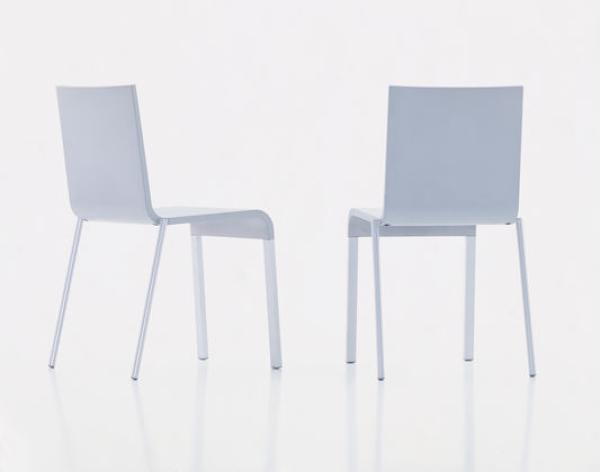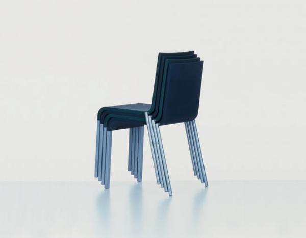 .03.03 is a ”general chair” that can be used in almost all kinds of spaces. The shell, with its linear silhouette and flexible integral foam construction, adapts to the body: when the sitter leans back, the upper part of the backrest yields slightly. Built-in leaf springs give added resilience to the backrest and return it to the original position when pressure is removed. This makes .03 so unexpectedly comfortable. .03 offers many advantages, especially for use in public spaces: it can be compactly stacked (up to 20 chairs), has linking connectors with or without seat numbers and is robust and easy to clean. Integral polyurethane foam shell, back with integrated leaf springs, back legs in tubular steel, front legs in aluminium profile. Lunch : 1999 Dimensions : without armrests, non-stackable 790 × 380 × 525 mm; without armrests, stackable 790 × 435 × 525 mm |