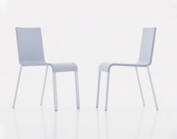 .03 High.03 High facilitates dynamic work at a stand-up table. The sleek, height-adjustable seat made of polyurethane foam has integrated metal springs that make it surprisingly comfortable to sit on, while an angled support provides a footrest. The chair does not have any armrests, making it suitable for sitting in different sideways positions.