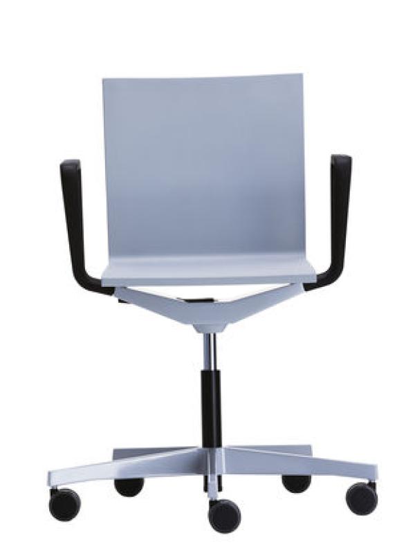 .04Van Severen's .04 is very different from conventional swivel chairs for the office. Its flexible shell is comfortable to sit on and pleasantly yielding to the back. Its rocking mechanism allows for a smooth transition from the sitting to the reclining position and for gentle sideways movements. Materials : Polyurethane seat shell with upholstered effect cantilevered on steel base, flexible backrest thanks to integrated leaf springs, base arch in die-cast aluminium.