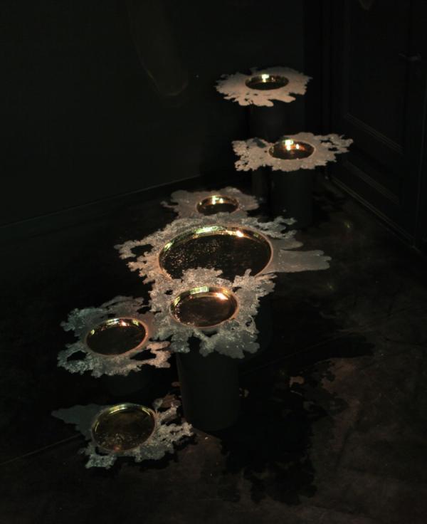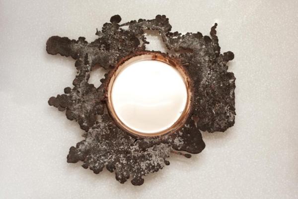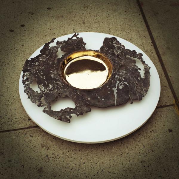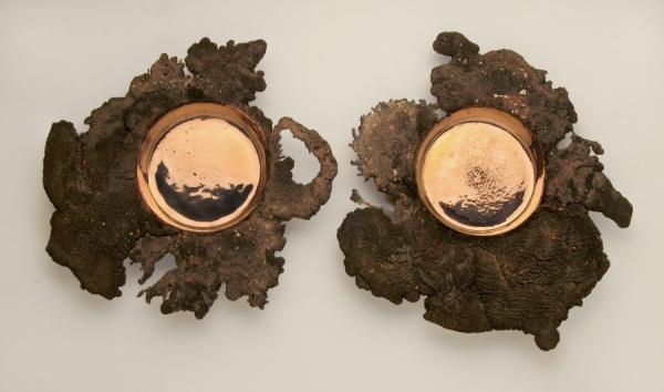 19"19 is an exploration of sand casting, which is a low fidelity technique used for making metallic objects. The technique involves pressing a shape into sand to create a void, and then roughly pouring molten metal into the void. Some overspill is a by-product of this process, which is, in conventional circumstances, cleaned up after production and re-finished. In this project we explored the expressive possibilities of the overspill. We developed a technique that encourages a generous and unpredictable overspill during production, which occurs along the entire open perimeter of the cast piece, making a unique 'halo' for every piece fabricated. We chose to use a high copper content brass such that the overspill oxidizes instantly, producing an extremely textured surface that stands in contrast to the interior of the piece, which retains a smooth finish because it does not come in contact with air, and which we hand-polish to a near mirror finish. 19.280's are unlimited production, numbered and signed. 19.540's are a limited run of 95 pieces, numbered and signed. 19.800's are a limited run of 19 pieces, numbered and signed. Made of recycled brass in East Vancouver at the oldest foundry on the West Coast of Canada."