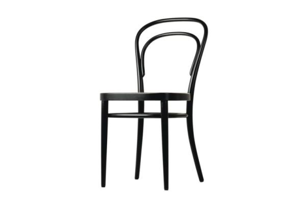 214"THE FAMOUS COFFEE HOUSE CHAIR IS AN ICON The famous coffee house chair is an icon and considered the most successful mass produced product in the world to date: it initiated the history of modern furniture. The basis was a new technique - the bending of solid wood - that Michael Thonet developed and perfected during the 1850s and it was the first time serial furniture production was possible. Added was an ingenious distribution model: 36 disassembled chairs could be packed into a one cubic meter box, shipped throughout the world, and then assembled on site. With its clear, reduced aesthetics this classic has been placed in the most diverse environments for more than 150 years. It is produced in our Frankenberg facility. Without armrests, open back or backrest (215). Seat and backrest with wicker* or covered with leather or fabric. Seat also available as molded plywood seat. All wooden parts in stained beech.