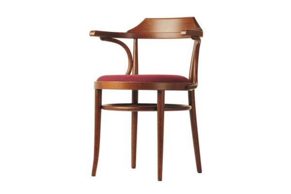 233"THIS BENTWOOD CLASSIC REVEALS ITS UNIQUENESS AT SECOND GLANCE Known to all and very familiar, this bentwood classic reveals its uniqueness at second glance: the armrests are harmonically integrated into the extended backrest; two curved bentwood elements connect the armrests with the seat. They provide stability and, at the same time, a certain flexibility that makes sitting on this chair very comfortable. Therefore, it was used in numerous restaurants and cafés throughout the world around 1900. We produce the original in the well-proven Thonet quality. Wooden parts in stained beech. Seat with wicker, molded plywood seat or upholstered and covered with leather or fabric.