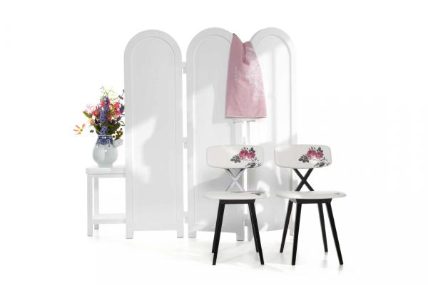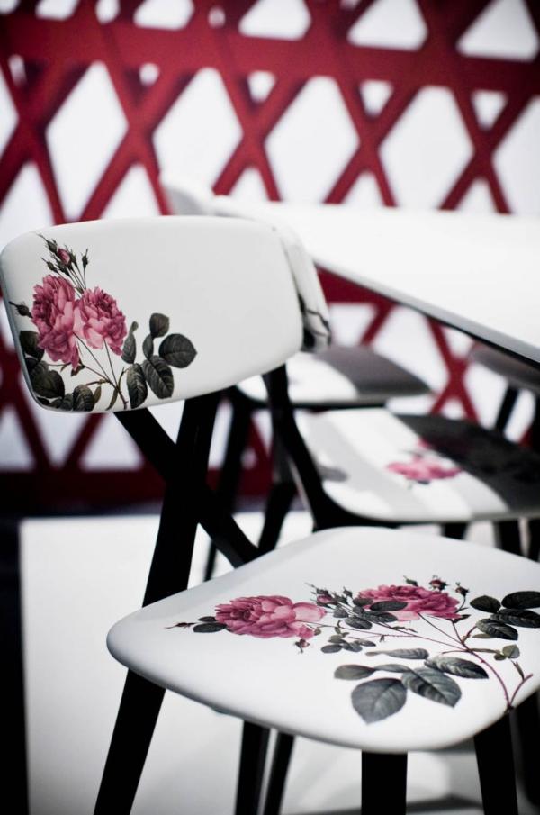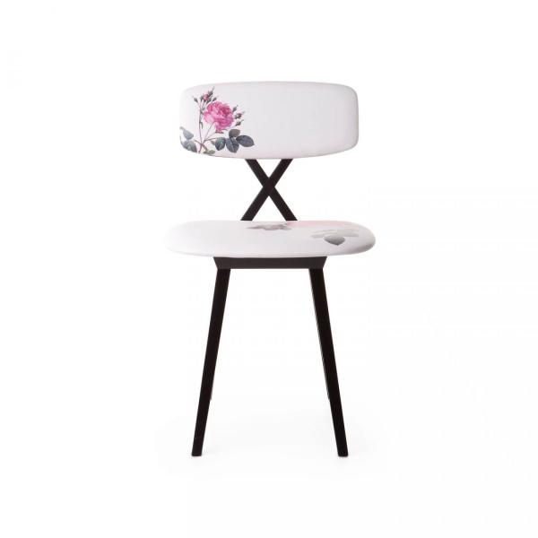 5 O'Clock ChairInspired by the classic English china with pink roses, this chair reflects a love for almost forgotten values & feelings from a noble past. Beech wood and Skai leather create a strong product with a soft surface, combining tradition with innovation. Launch : 2010 Dimensions :