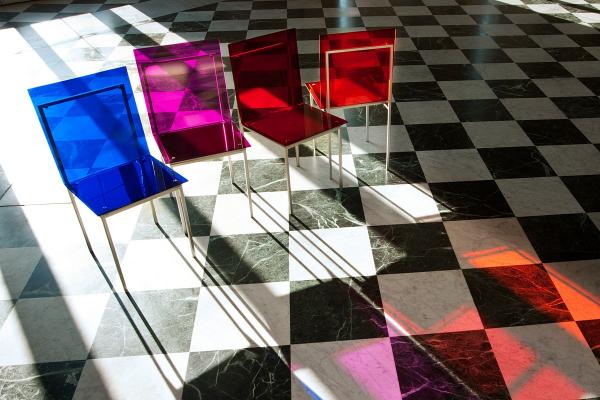 AdelphiIt comes from the original chair designed for the Adelphi Hotel in Melbourne. The linearity of its style reveals the minimalist stamp of this famous study of architects. The structure of the chair is realised in metallic tubular lacquered in a metallic grey or black colour. The sitting part looks like a paper sheet folded into an angle; it is realised in Acryl of various colours. Launch : 1998 Dimensions : w440 x d470 x h870mm |