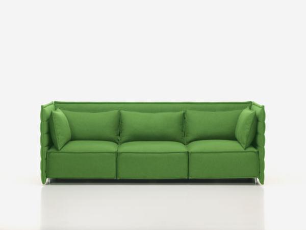 Alcove PlumeRonan and Erwan Bouroullec have added Alcove Plume, a low-slung sofa with an emphasis on casual comfort, to the Alcove product family. The thick, plush look of the seat cushions is matched by their superlative comfort. Though softly padded, they provide adequate support so that sitters do not sink in too deeply. Combined with the quilted side and back panels – a hallmark feature of the entire Alcove family – and the pointed loose cushions, they create a cosy and relaxing nest. Alcove Plume offers an inviting place to lift up your feet and curl up in its soft upholstery.
