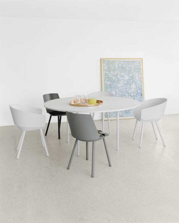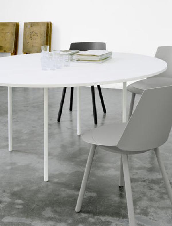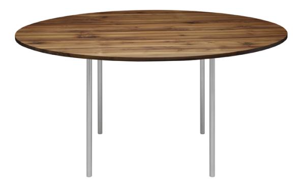 ANNAIn reference to the table TA14 ANTON e15 presents TA16 ANNA, the round version of the graceful table. Reduced to its essence in form and material, the round TA16 ANNA also designed by Philipp Mainzer, has a 20 mm thin table top in oiled oak, colour stained oak or oiled walnut and is available in two diameters. TA16 ANNA works as an elegant dining table that suits diverse interiors. With their thin diameter, the four table legs are fitted to the furthest possible engaged subframe underneath the table to offer the possibility of non-restrictive seating for up to six or eight places accordingly. |