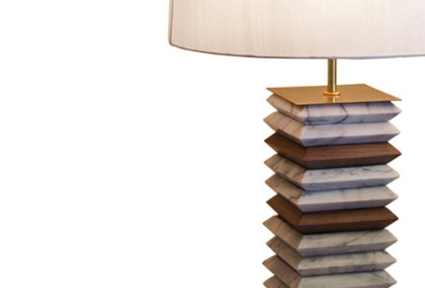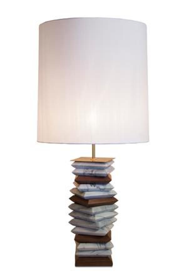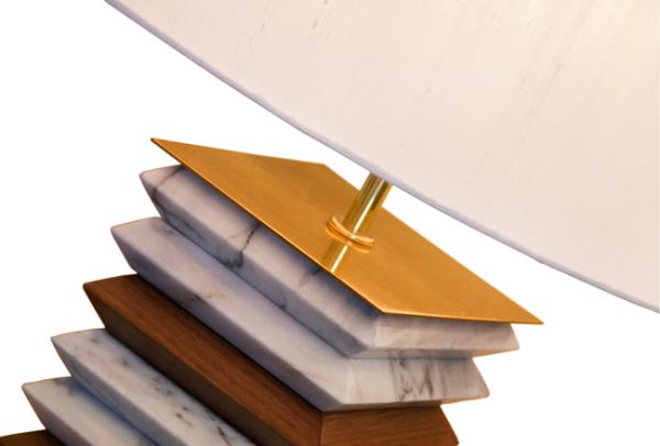 Apache Table LightWord that defines a collective of native Americans, the first to inhabit the wild areas of Colorado, whose unique landscapes mingled with the color of their skins. The characteristic landscapes of Colorado, Grand Valley, near to Palisade, are clear examples of rich layering, creating true Mother Nature libraries, not only by visual but by the knowledge that offer for a true nature lovers. APACHE Table Lamp structure, made of wood and marble, intended to represent the beauty of this natural phenomenon, recalling the landscapes of Colorado.