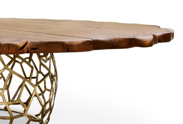 APIS IIThe Egyptians said that they were the tears of the God RA and in many other civilizations they were adores and considered as Gods. The liquor that they produce was, in many histories and cultures, connected to gold. And now all this royalty of the bees, originally called "APIS" in Latin, was the main inspiration for this wood and brass dining table. The imposing of this table is represented by a top that retraces the torso of big and ancient trees and in a base inspired on the golden beehives, that together results in a piece of nature translated into a piece of furniture. |