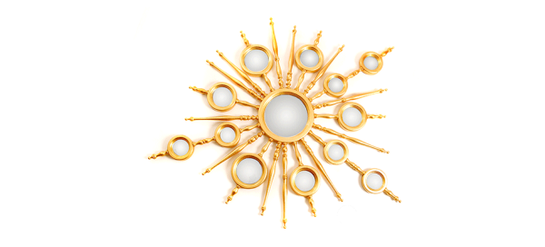 ApolloPRODUCT FEATURES : Thirteen mirrors framed in wood and supported by twenty-one turned wood spindles.