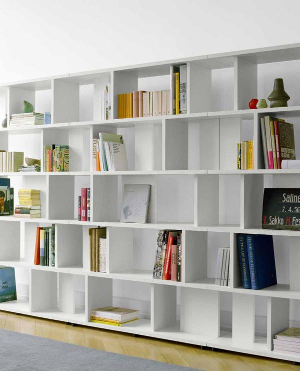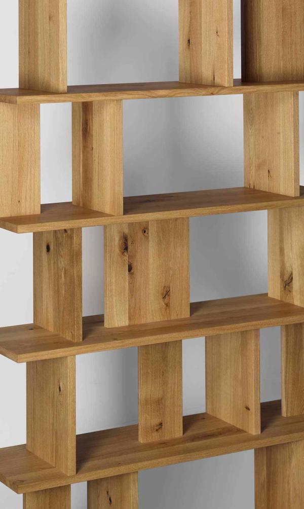 ARIEThe shelf SH05 ARIE is made of 25 mm thick solid wood or white powder-coated medium density fibreboard and is available in two different heights. The design concept makes a multitude of seamless combinations with itself possible without apparent visual repetitions. SH05 ARIE works either as a singular element, as shelving wall in a straight line, as an elegant corner solution with seamless docking points from both in and outside with its equal length and depth or in combination with the sideboard height. Invisible structural elements of the shelf enable it to be used as a freestanding room divider or as a traditional against-the-wall unit. The shelf is available in two heights and was until now delivered in one piece. The high version can now be delivered in two parts, which will make transportation of the product to the customer easier. |