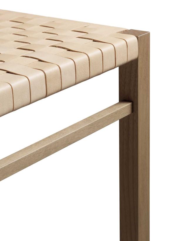 ASWANThe simple and elegant stool FK03 ASWAN features a hand woven seat surface finished in a textile band or vegetable tanned leather, which is luxuriously soft and will patinate with exposure to direct light. Inspired by Egypt and hence the name, ASWAN is a clear example of Ferdinand Kramer’s® alluring appeal in his designs of functional and compelling pieces. The stool FK03 ASWAN is available in waxed solid oak or European walnut. The versatile character of the linear stool allows for an application in diverse environments, either as a stand-alone piece or also in combination with other furniture from the e15 collection. For additional stability, the stool’s frame is fitted with a steel profile. FK03 ASWAN is delivered as one piece. |