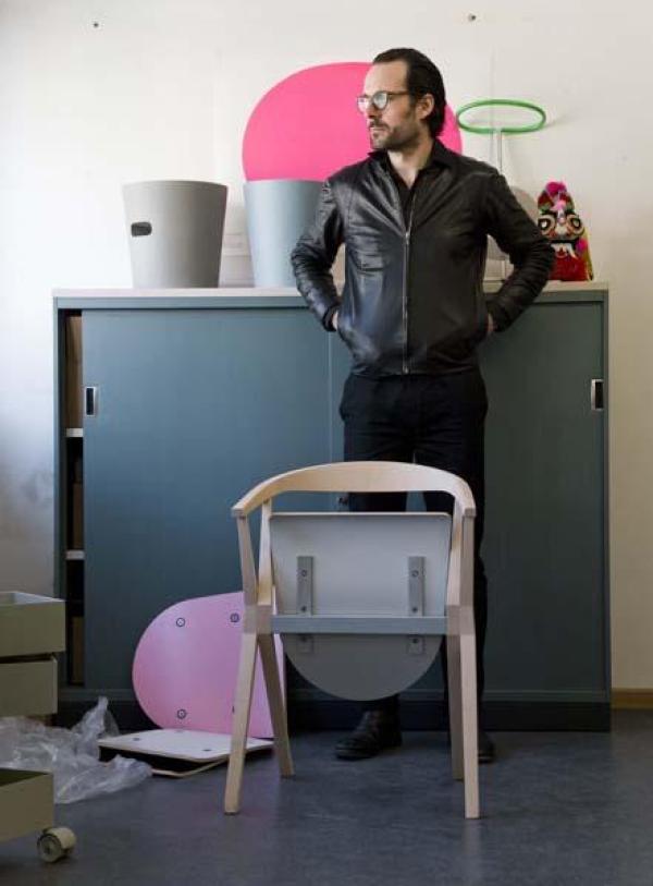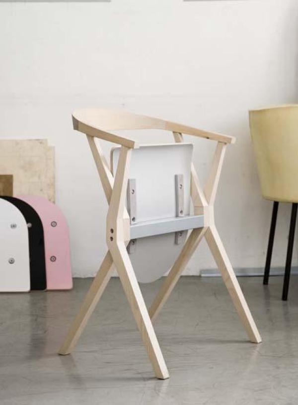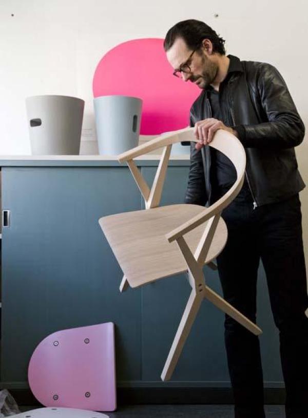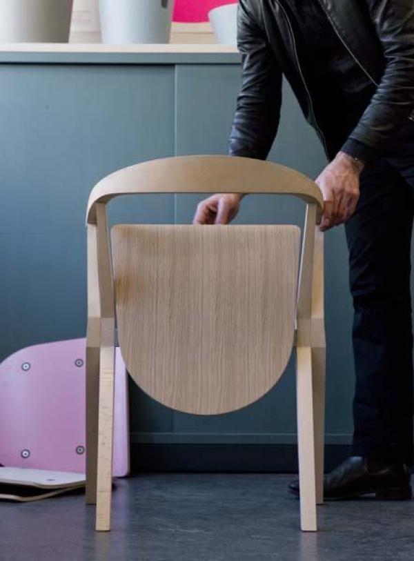 B ChairSides and back in solid natural ash, varnished. Seat in varnished ash plywood, with the underside laminated in colours or aluminium. There is a version upholstered in leather. Structure and cast parts in aluminium painted in the same colour as the laminated seat. Launch : 2010 Dimension : WIDTH 560 x DEPTH 480 HEIGHT 770mm |