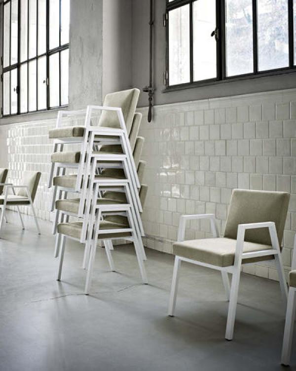 Babela chairDesigned in 1958 by Achille and Pier Giacomo Castiglioni for the Milan Chamber of Commerce, Babela is an excellent example of how practicality and aesthetics can work together in the same chair, a comfortable, stackable easy chair with a rigorous design perfect for the institutional setting for which it was conceived. This reissue brings Babela into contemporary spaces, transforming the original iron frame into a warmer, more natural ash wood one.