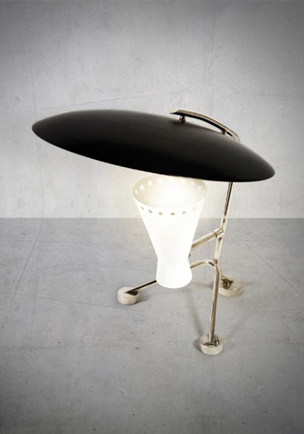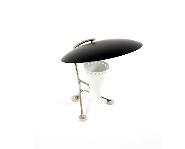 Barry TableBarry table lamp is a retro, 50's lamp that recreates American vintage environment. Perfect to place on top of a vintage sideboard/console with its indirect lighting. It's a decorative light which is made in brass, with its black lampshade in aluminium.