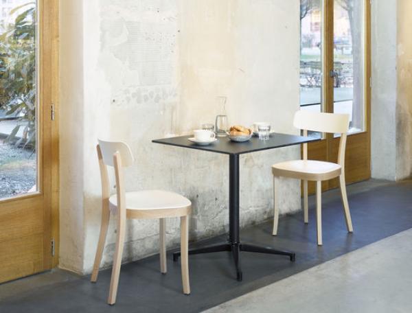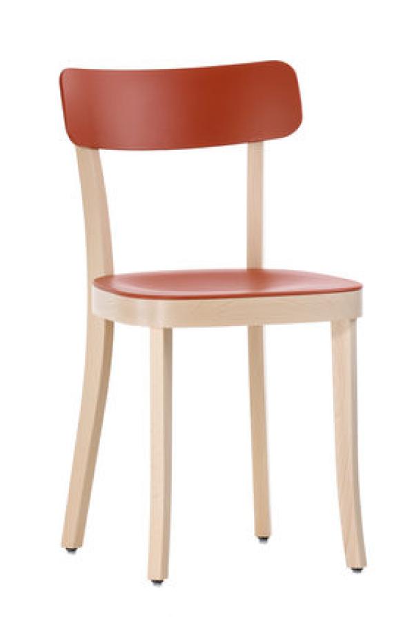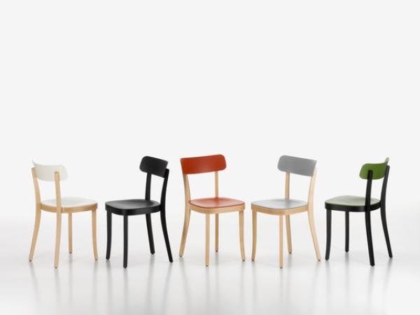 Basel ChairIn the Basel Chair, Jasper Morrison renews the classic genre of simple wooden chairs that have been mass produced in great varieties and number for about a century. The balanced proportions first catch the eye, then on closer inspection the chair reveals a crucial innovation. The Basel Chair’s seat and back are made of plastic and are moulded in a more pronounced organic shape than pure wooden chairs; the surface is textured and slim – and thus more flexible. The combination of materials means the Basel Chair proves to be very comfortable and the various colours visually quite striking. Natural beech base frame or dark stained beech, seat and backrest made of ASA plastic dyed throughout. Lunch : 2008 Dimensions :