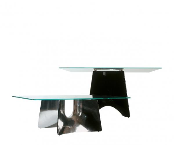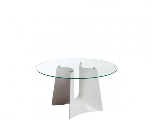 BentzTable and coffee-table with base structure in aluminium casting and round, square, rectangular or elliptical 10mm tempered glass tops, firmly fastened to the structure through an innovative mechanical system. Bentz is available in two heights and in the finishes: polished or painted in white or black.