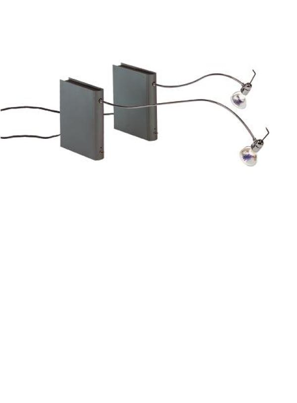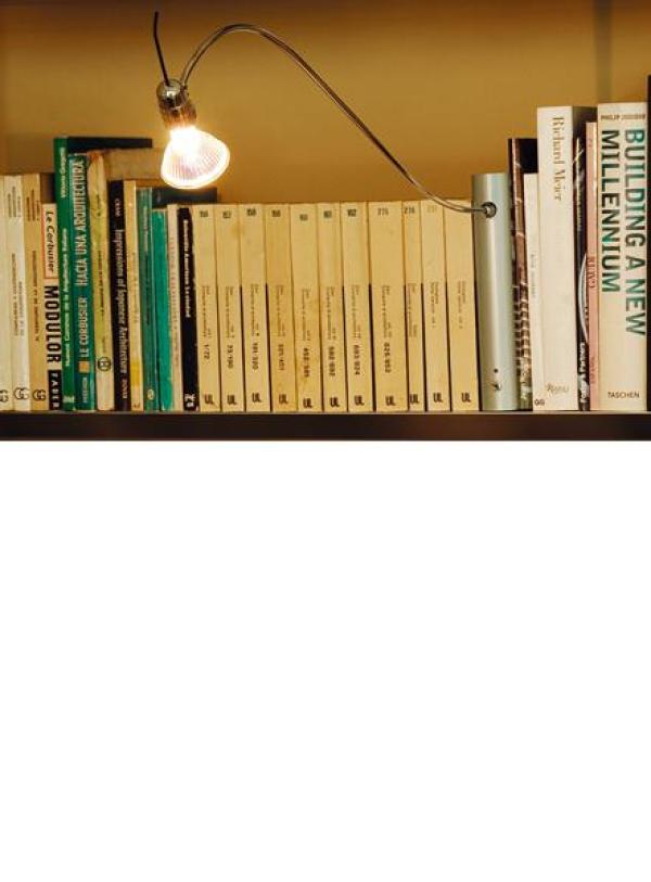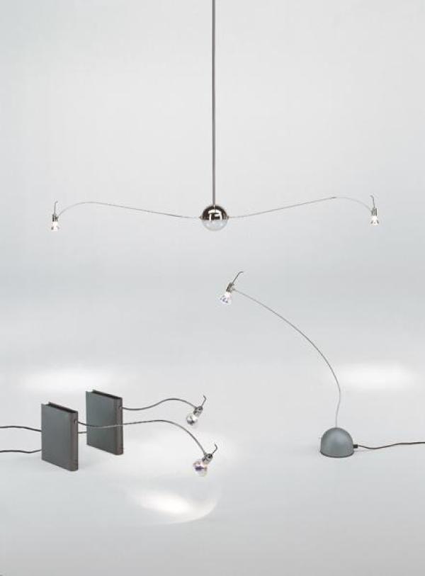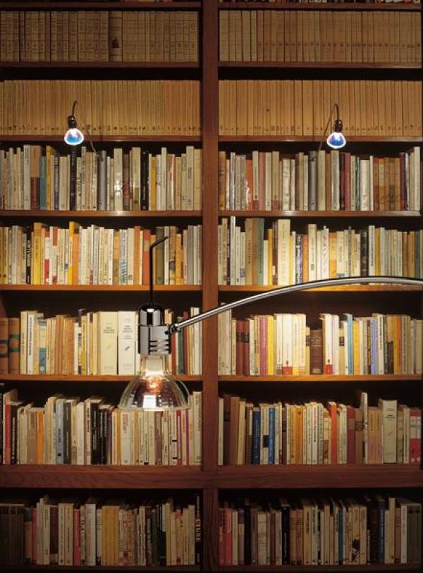 Bib Luz Libro lampIf I place a lamp on a shelf, all of the shelves bellow it are in shadow. Only by moving the light source forward can I light up the backs of the books. What I then have is a body with a shaft with a light at the end of it. The body, which houses the transformer and the switch, needs to be able to placed in any position on the shelf unit, occupying a minimum of space and pass virtually unnoticed. What better form could I imagine than that of a book?. Finishes: Aluminium box with a grayish green matt metallic finish, containing the transformer, the two-way dimmer switch and off-indicator diode. Swivel shaft in chromed brass available in two sizes, 40 or 65cm. Revolving lamp-holder, of 90º, in chromed brass. Base in iron plate to give stability to the lamp. Detachable plug to allow the mains lead to be passed easily through slots or openings in the shelving. Halogen bulb GU-5.3 bi-pin, of max. 1x50W 12V/50Hz, included. Certified CE UNE-EN 60598-1.20x58x27H.cm 20x83x27H.cm Launch : 1985~1989