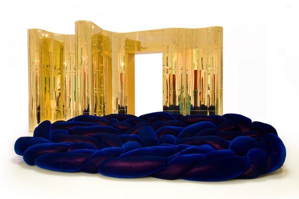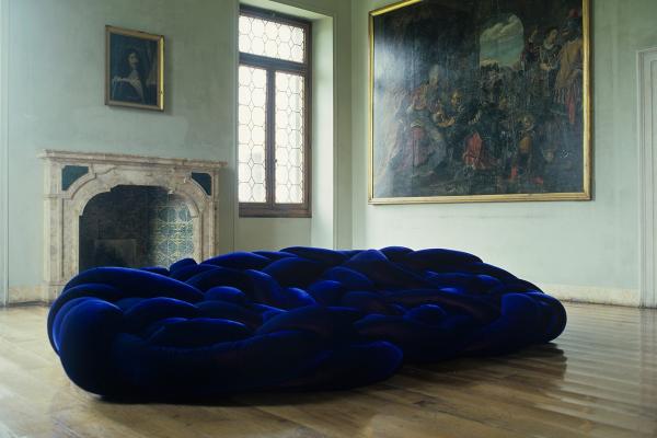 BoaSoftly woven, it resembles a large nest that also holds many people – lying down, sitting or curled up - who can also crawl inside the weave to feel even more protected. With no frame, it consists of about 100 meters of tubular velvet filled with polyurethane chips and goose down, knotted with extreme manual expertise by 4 people simultaneously to form a large irregular weave. Covering in velvet only. Launch : 2002 Dimensions : w3000 x d1600 x h650mm |
