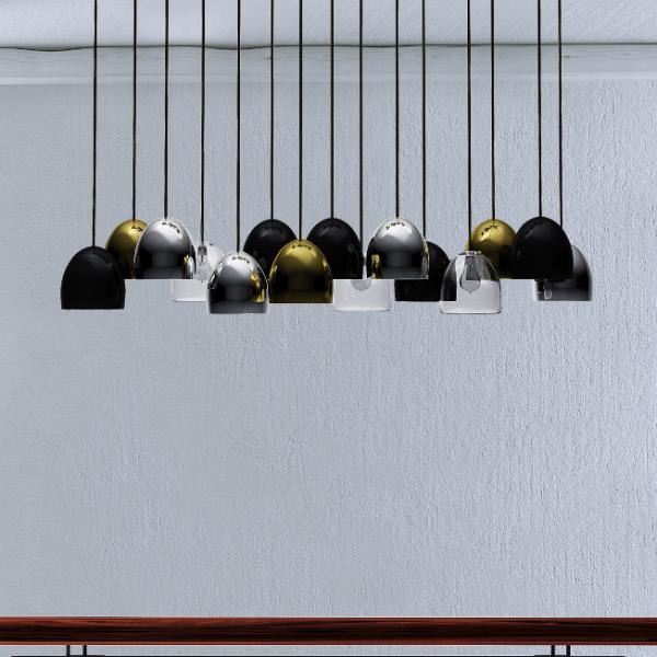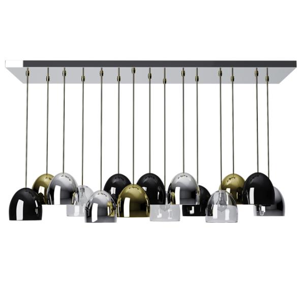 Bombarda Suspension LampIn the gallery-lined Miguel Bombarda street at Portuguese city of Porto, new exhibitions and streetside concerts create a festive avant-garde ambiance of the city’s bohemian art scene. Like this vicinity, Bombarda Suspension Lamp is an imposing piece, with 15 glass shades suspended on a metal base, brings joy, contrasts and distinctiveness to dining rooms. |