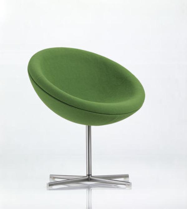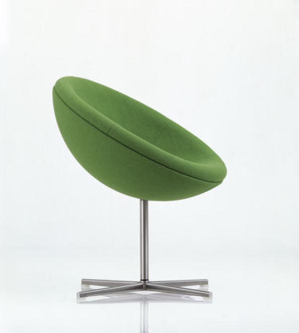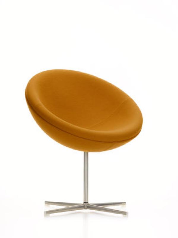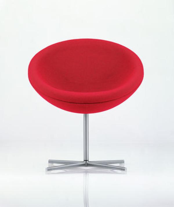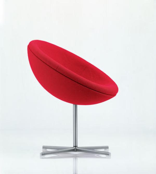 C1Verner Panton’s career as a designer first peaked at the end of the 1950s. With a series of furniture featuring basic geometrical shapes he pre-empted Pop Art ideas and yet with the base frames clearly adopted the elegance of Scandinavian Modernism. The best-known models from the series are the Cone Chairs and Heart Cone Chairs, originally designed for a restaurant. With the C1 armchair created around the same time, Verner Panton for the first time chose a section of a sphere. On swivel bearings and slightly tilted, the upholstered seat shell is astonishingly comfortable – both for relaxed sitting leaning back and for upright sitting. The C1 can be integrated into private apartments, hotels or reception areas, cuts a fine figure in larger groups. Laminated body, brushed stainless steel base and central tube, polyurethane foam upholstery.