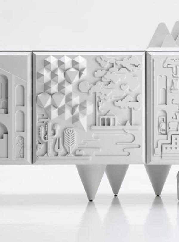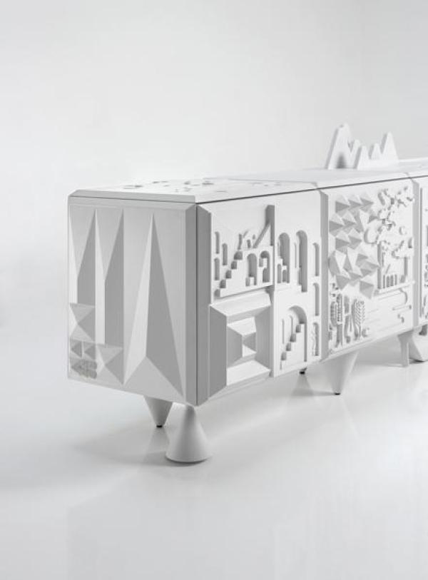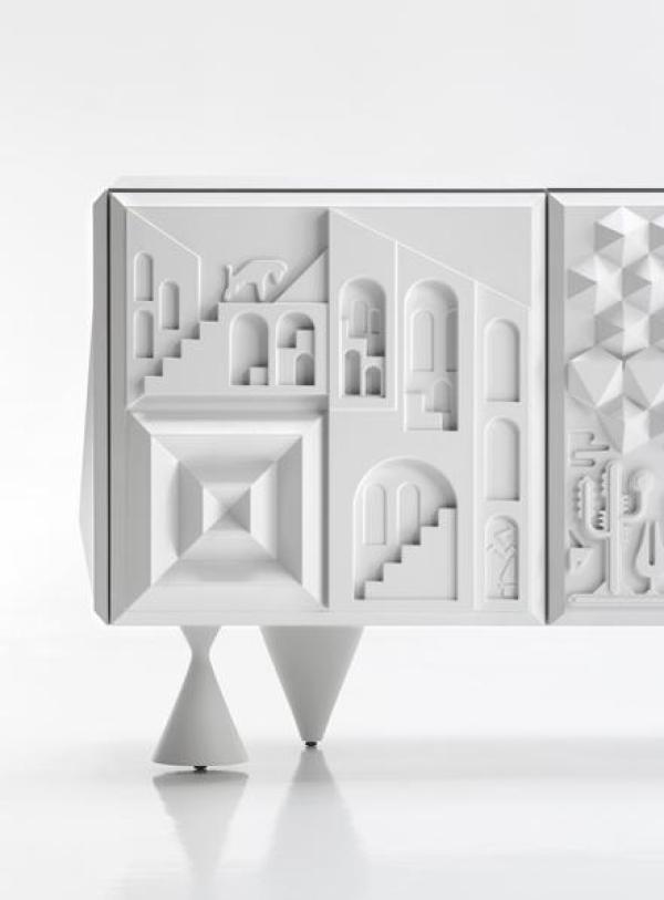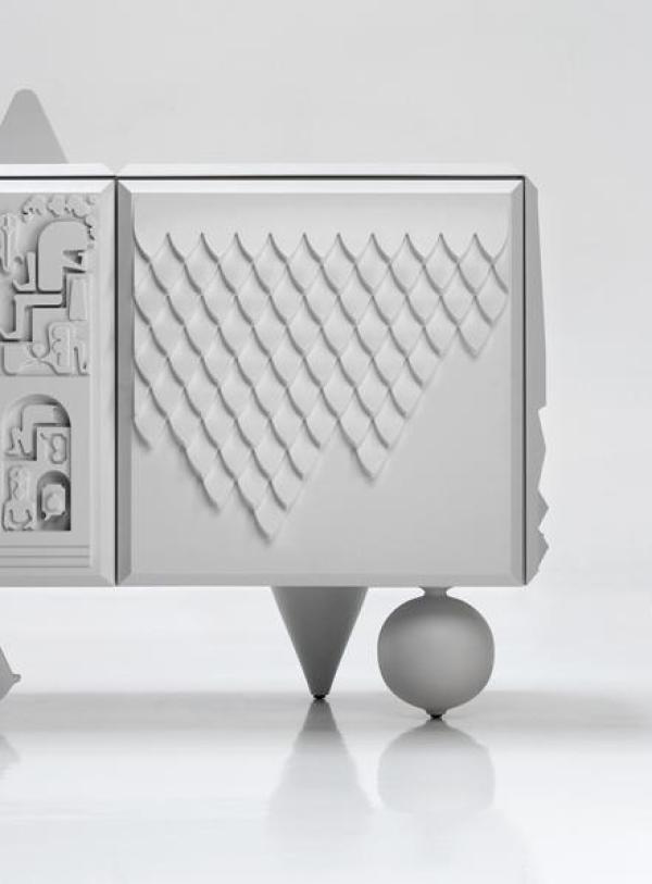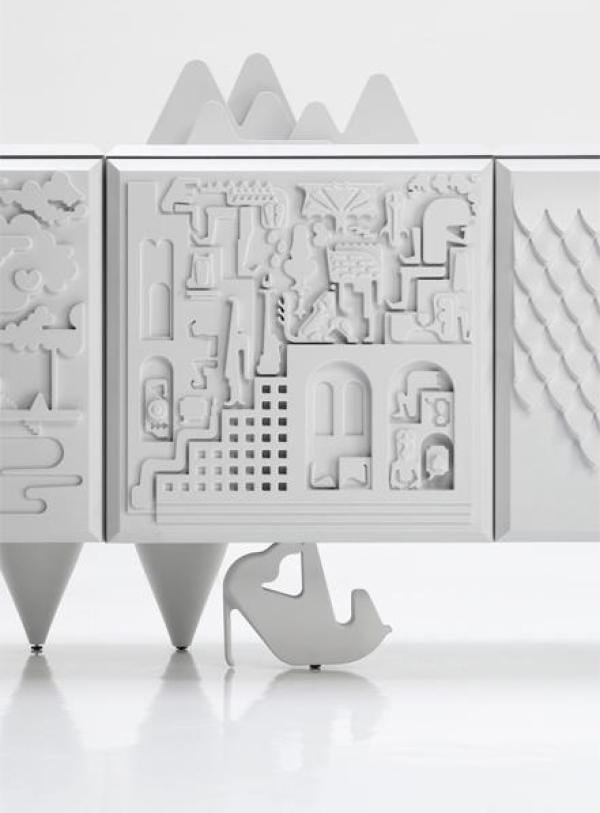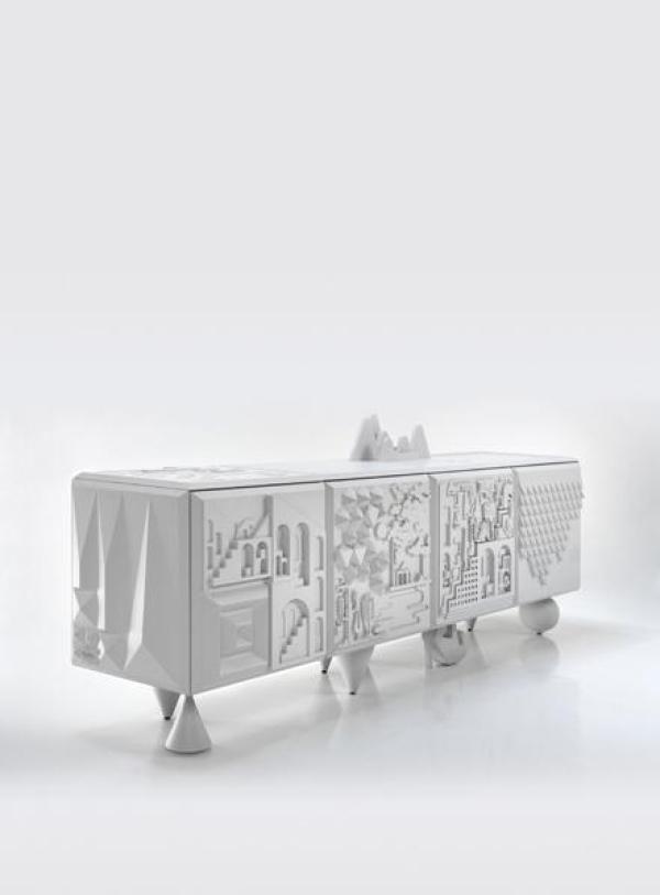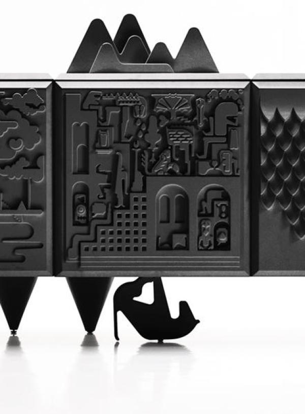 Cabinet Tout va BienBody and shelf made in black or white MDF laquered. Doors, plain top and sides in integral polyurethane injection. Feet of solid alder wood in one piece, lacquered and micro-textured in the same colour as the doors. Launch : 2009 Dimension : Modules: WIDTH 1200 x DEPTH 600 x HEIGHT 500mm |