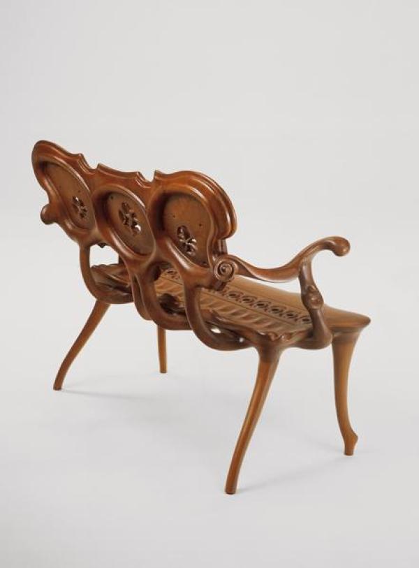 In contrast with what happened in general to almost all the Modernista furniture which ended up going out of fashion, funiture designed by Gaudi is still as modern today as it was when it was first designed. Perhaps this is because it is more reminiscient of sculpture than mere benches and chairs. The Calvet armchair is outstanding amongst these designs because of its expressive force. It was designed along with four other pieces, a stool, a mirror, a chair and a bench, for the house of the same name. Calvet Furniture solid varnished oak. Launch : 1902 Dimension : WIDTH 1180 x DEPTH 540 x SEAT HEIGHT 490 | HEIGHT 950mm |