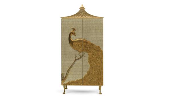 Camilia | ArmoireDesigned passionately and exquisitely by the incomparable talents powering Koket, the Camilia was created to grace the most regal of dining rooms with its elegance and splendor. Inspired by the aristocratic palaces of the Alexandrian pashas of Egypt, the mother of pearl Camilia is crowned by artisan hand-carved peacock, meticulously engraved and delicately finished in gold leaf. It is only fitting that the Camilia’s treasures be concealed by the most graceful of keys.