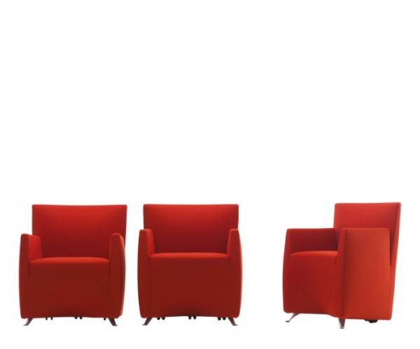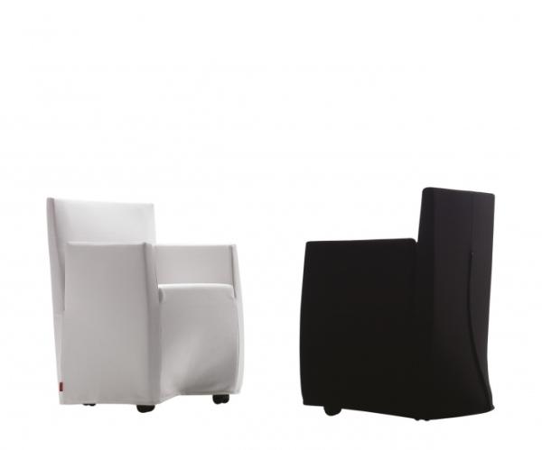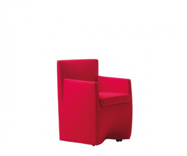 CaprichairArmchair with flexible backrest, also available with a larger seat (Caprilarge) or a lower, larger and deeper seat (Caprilow). Steel structure with padding in flexible CFC-free cold-foamed polyurethane. Cover in fabric, synthetic material, leather. Also available in the Jolly version with removable cover available separately in fabric, synthetic material and in the Millenium version with removable cover and seat cushion.
