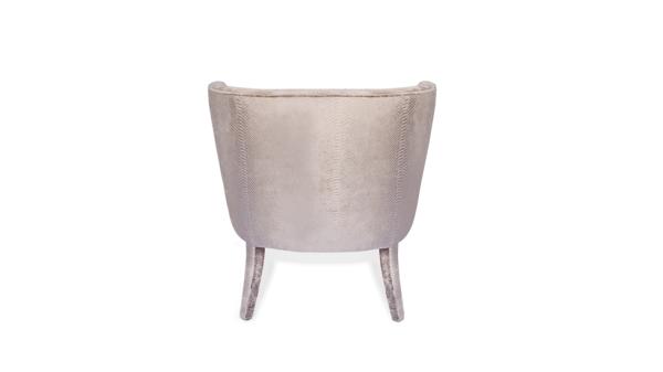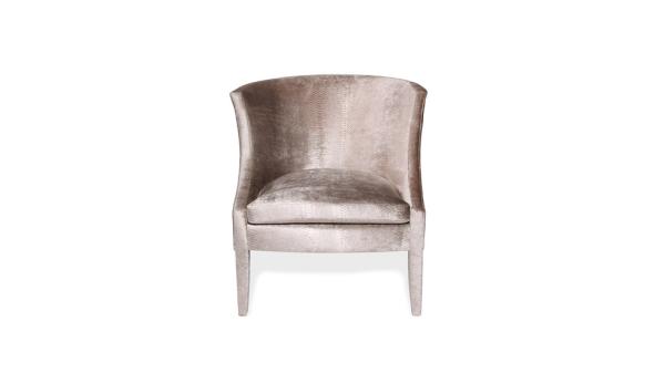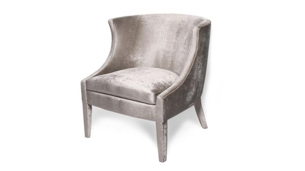 Chignon | ChairWith an insatiable appetite for glamour KOKET designers took the classic tub chair to new heights with the elegant Chignon fully upholstered in a soft Reptilia Phyton Champagne colored fabric.