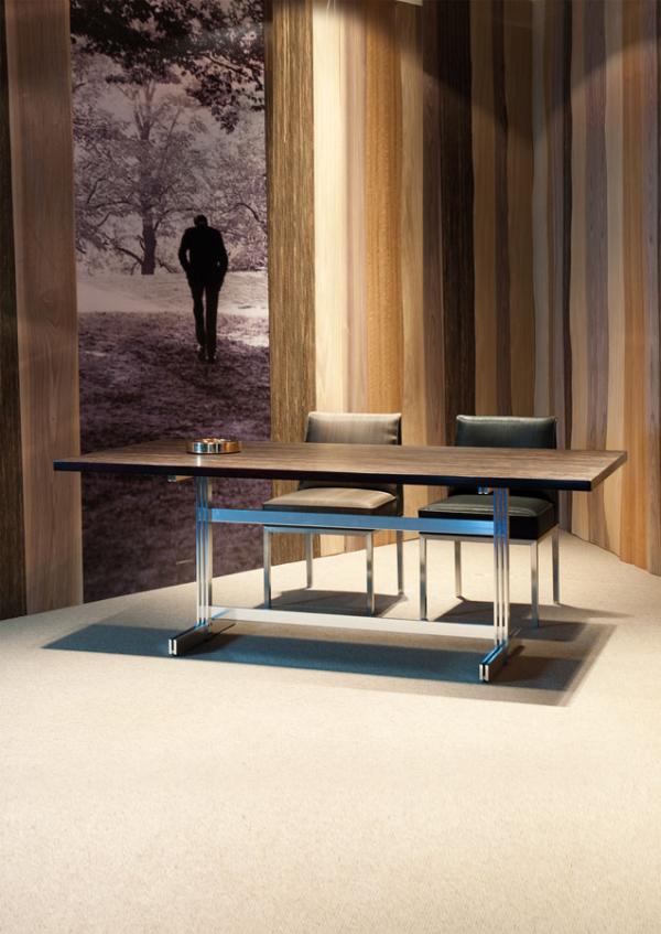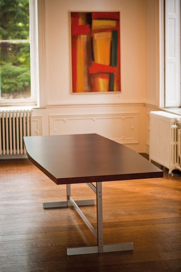 "The curves of this “waisted” table perfectly reflect nature. If you're not disposed to curves, you will appreciate the sober form of the rectangular table top in quality materials that reference contemporary design:multiplex finished in 2 mm solid core laminate or veneer. The legs are archetypal of the “wabbes desk”, rendered in aluminium to give a new, contemporary timelessness: light weight, stable and recyclable. In the next few years it will spawn a new generation of classically elegant, essential furniture.The curves of the elegant and dynamic ‘waisted table’ perfectly reflect nature.