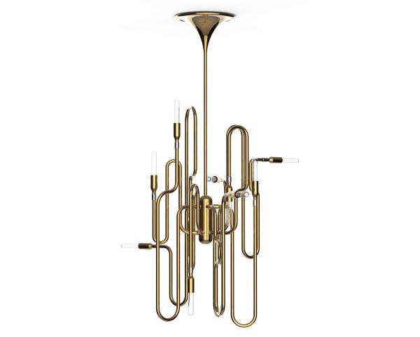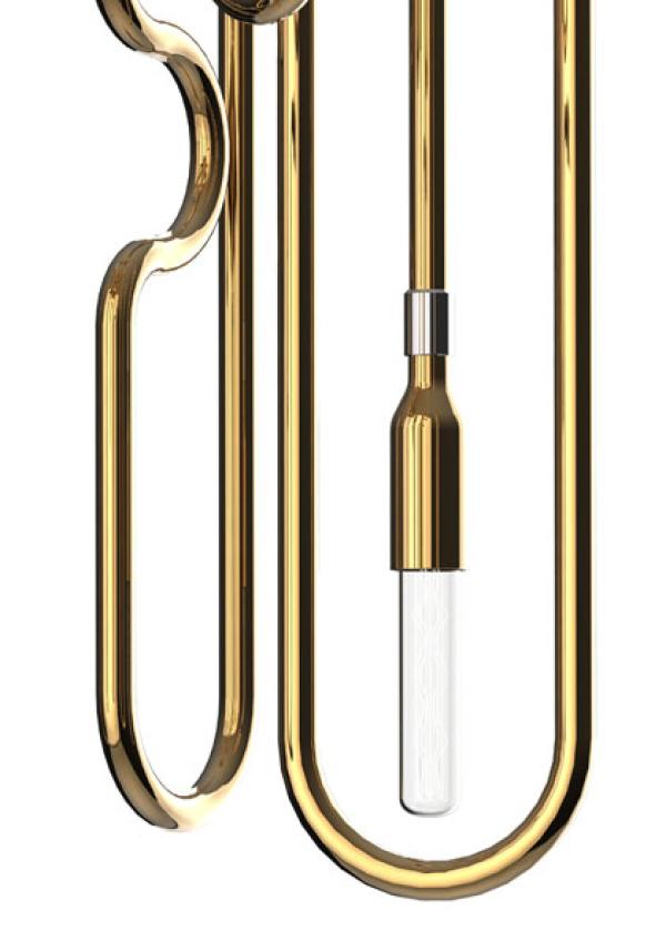 The ideal choice to attribute to your home a softy and sophisticated touch with a sculptural drama. Its structure is made in brass, covered by a golden bath just like real trumpets are. This lamp gives the perfect ambience to your dining room or living room. Let yourself be part of Clark suspension lamp, dare to change your way to see lighting at your home. Launch : 2011