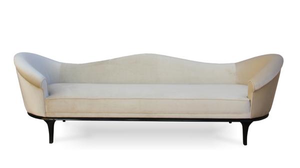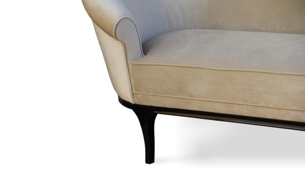 Colette | SofaA tribute to Parisian Femininity. The vibe is flirty, a little delicate, ever so slightly vintage. Fully upholstered tight back sofa with an elegant lacquered band leading to a sleek and elegant feet.