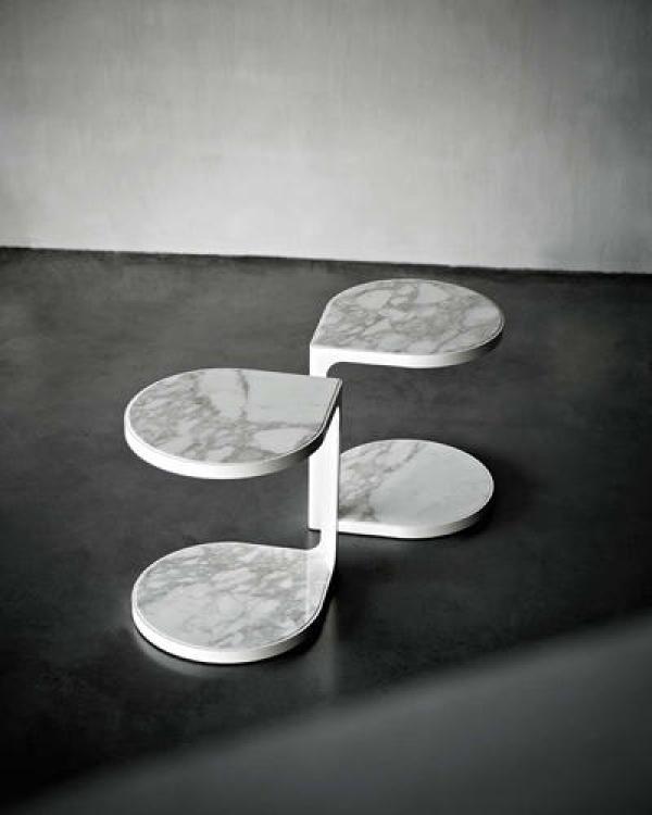 Nature’s shapes represent a major source of inspiration for designer Gordon Guillaumier. The top of the Coot table was inspired by the simple geometry of a petal;it is a perfect motif for generating a variety of different models from one single form. The support structure is designed to allow the top to open up over a chair or sofa, a particularly useful feature when using a laptop computer.
