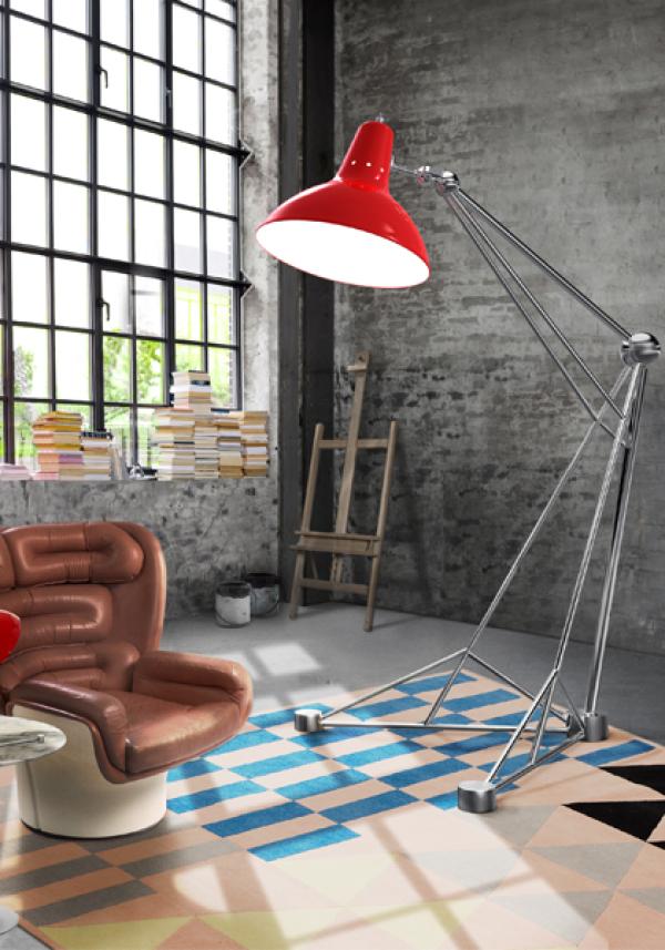 DianaThink big with Diana floor lamp XL: this contemporary fresh classic lamp turns any room into a giant colorful inviting space. Ideal for big lofts and artist studios, this creative floor lamp composed by a colorful lampshade in aluminum will give inspiration to any setting. Conceived in brass with the switch on the top, this huge Diana version is 2.3m tall. Can it be more unique than this?
