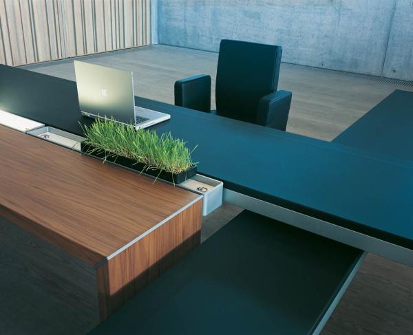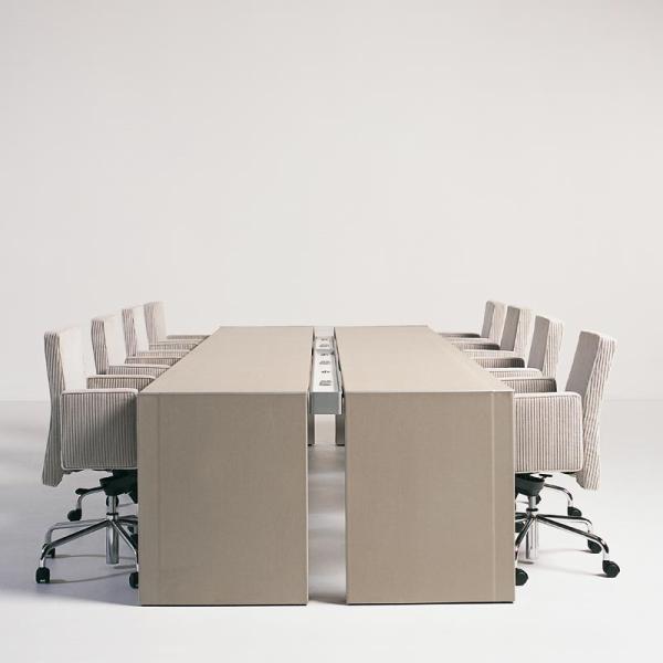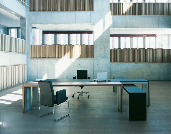 "With Double You, the Swiss designer Hannes Wettstein establishes a very innovative vision on office organisation, taking the concept of collective use as a starting point. Contrary to the individual and the shared workspace, the Double You system is not defined. The user is free to decide the size of the desk according to the amount of work and time pressure within his environment.