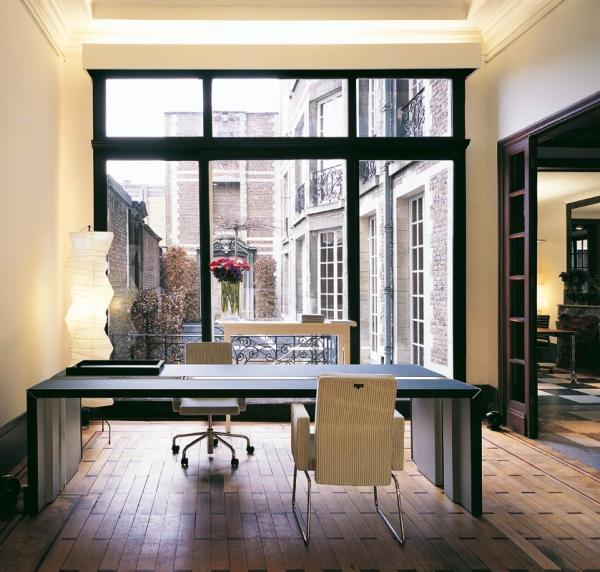"With Double You, the Swiss designer Hannes Wettstein establishes a very innovative vision on office organisation, taking the concept of collective use as a starting point. Contrary to the individual and the shared workspace, the Double You system is not defined. The user is free to decide the size of the desk according to the amount of work and time pressure within his environment.