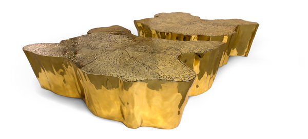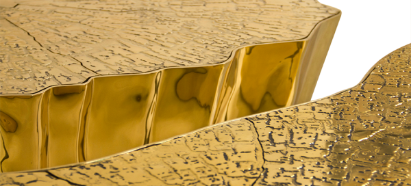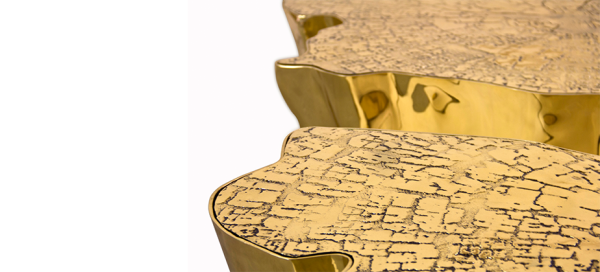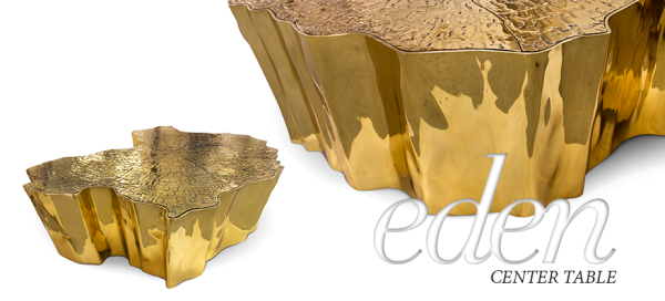 EdenThe mystic behind the name inspires Eden. This center table represents a part of the tree of knowledge and the tale of the birth of desire. Boca do Lobo uses the highest quality materials and textures, giving them shapes through objects that create a cosmopolitan luxury environment, finding the finest example in this table. Fully made of polished casted brass, with a delicately engraved top exposing the heart of a golden tree to the very heart of a home. Available a set of two center tables and also an elegant and highly decorative side table.