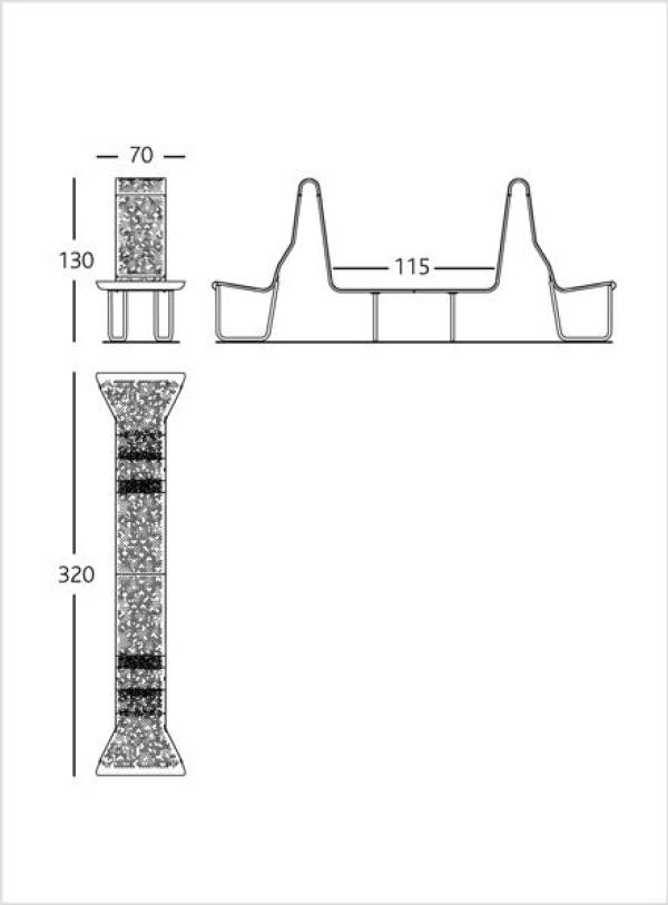 El Filosofo benchFor Bd, and paying tribute to the Catalano bench, I have invented The Swiss benches, a series of public benches that have the virtue of offering some extra function, some extra detail, that added value I always try to find when I develop my ideas. One of the benches is El Poeta (the poet), where I can write or eat with the support of a table. Another is dedicated to El Banquero (the banker), who is a tougher sort, with one part at which to stand (because he sits down all day) and eat a sandwich (because he has very little time). Then there is El Filósofo (the philosopher), inspired by the person who needs some quiet and visual calm, but never wants to be alone, because he needs to chat. For people who prefer to be alone I offer El Solitario (the loner), and for two people, La Pareja (the couple), because it is still possible to share a bench without anyone being sitting beside you. Steel tube legs and seats with steel tubular chassis covered with perforated steel sheet Available in bronze or silver grey texturized polyester resin paint finishing. Launch : 2005 Dimension : WIDTH 700 x DEPTH 3200 x HEIGHT 1300mm |