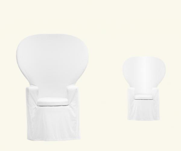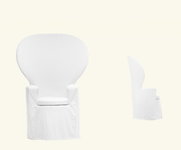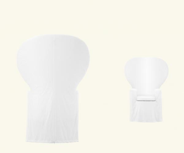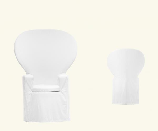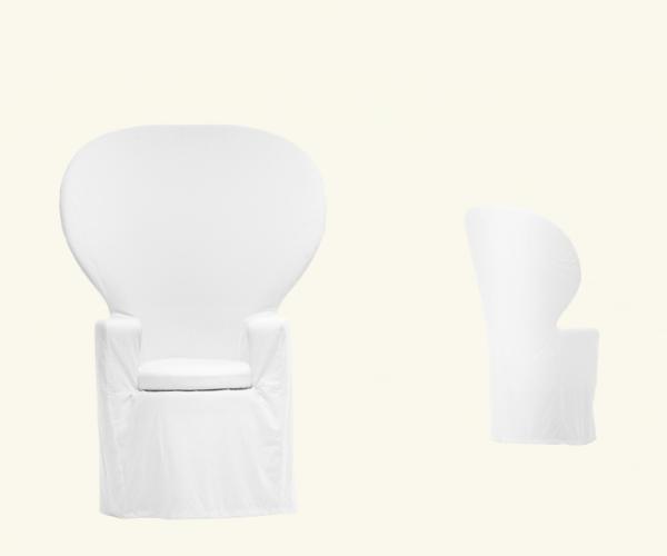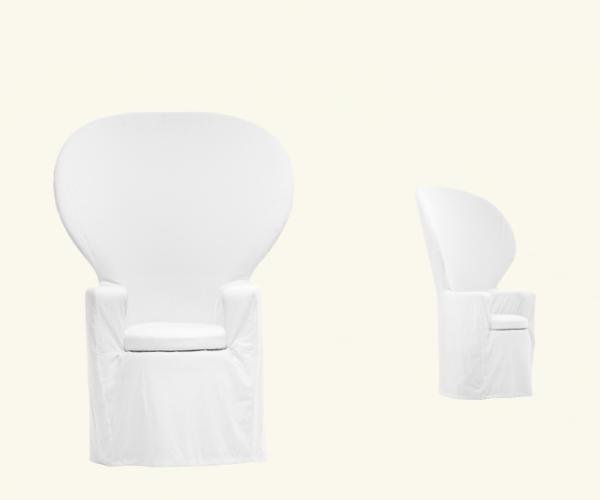 EmmanuelleArmchair with internal plywood structure and CFC-free soft polyurethane foam, shaped from block, featuring different densities of the material. Internal heavyweight Dacron cover and external cover in 100% cotton fabric.