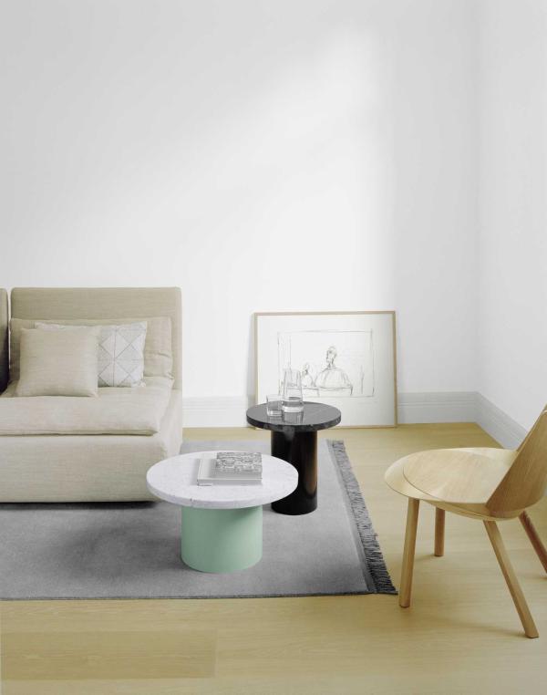 ENOKIWith the smart and playful side tables CT09 ENOKI, e15 introduces marble for the collection, applying it to novel form. Cleverly toying with material, colour and dimensions, the versatile side tables are presented in combinations of rich marble and coloured steel. CT09 ENOKI are available in two different diameters and heights with a 30 mm thick marble top, which are combined with harmonising or contrasting coloured steel bases in subtle or unusual combinations. In addition to other interesting combinations, pure shades of all white or black for the entire table are also offered. The marble is equipped with a matt oiled finish, which is protective, yet requires maintenance. The side tables have adjustable feet and are delivered in two pieces. |