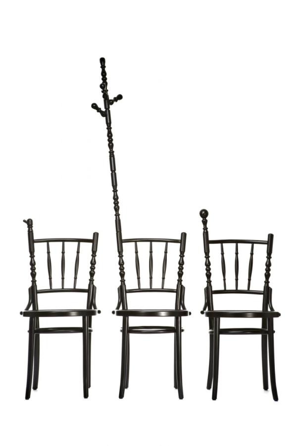 Extension ChairThe ‘extension’ chair is a translation of how a chair is used. Vroonland draws on the manners and customs of how we use a chair, transforming it into a coat hanger seat. What Vroonland intrigues is that technology, craftsmanship, storytelling and the actual physical contact all comes together in this one design: a chair. Launch : 2010 Dimensions :