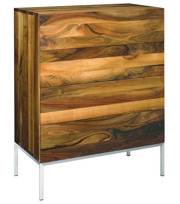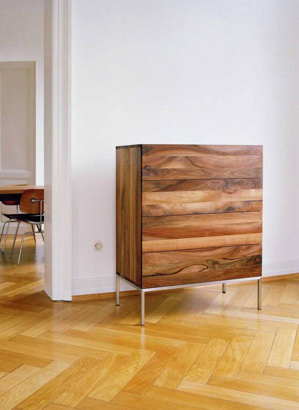 FATIMAThe solid wood body is 20 mm (3/4 inch) thick. The sides of the drawers have an end-to-end indented strip functioning as handles. For gentle automatic closure of the drawers the SB04 FATIMA is fitted with a special hardware. The frame is made of brushed stainless steel and mitre-polished at the edges. One adjustable foot facilitates levelling of the sideboard. |
