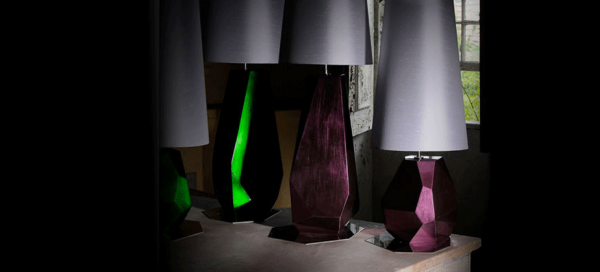 These lamps allude to mineral forms and natural materials to produce sculptural pieces.