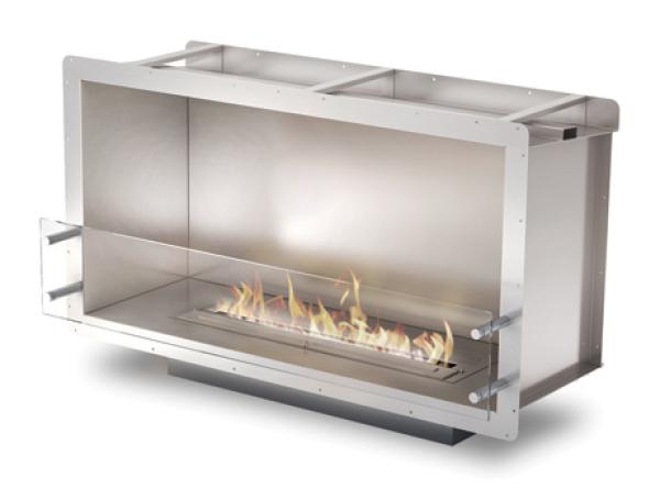 Firebox 1000SSThe single sided, zero clearance Firebox 1000SS offers the versatility to integrate effortlessly in commercial and domestic settings ranging from homes, units and townhouses to offices, restaurants and bars.Ideal for myriad architectural environments, the smart stainless steel, rectangular-shaped firebox can be front or back fitted, with or without an exposed flange, installed within cabinetry or positioned in an existing, enclosed fireplace. Its uniquely simple aesthetic enables the firebox to suit any d?cor. It features a toughened glass Wind Screen Static for safety and houses the EcoSmart XL700 burner ? perfect for environments where an elongated flame is required. |