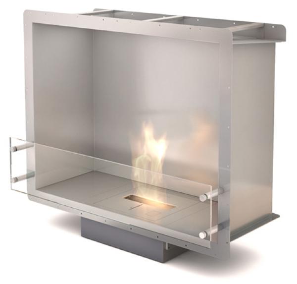 Firebox 900SSStreamlined, the Firebox 900SS is a rectangular-shaped firebox featuring a built-in stainless steel bench. Its clever design facilitates multiple installation options including front or back fitting, with or without an exposed flange, in a variety of sizes, within cabinetry or in an existing closed-off fireplace. The flue less EcoSmart Burner is easily inserted into the firebox once it's securely positioned.The zero clearance Firebox 900SS takes the hard work out of installation! |