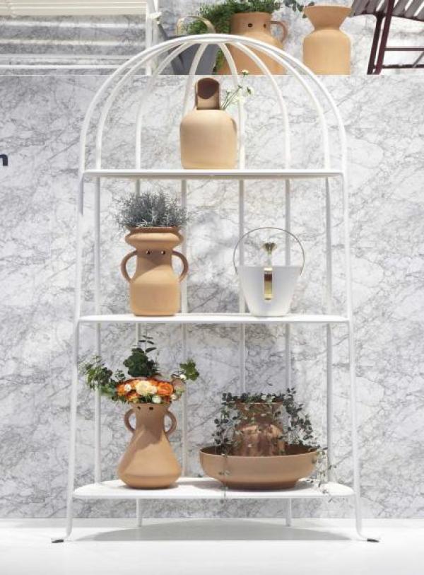 Gardenias shelving unitGardenias is a collection of furniture for the garden. That’s not a real genre, but it does differentiate Gardenias from other exterior furniture collections. Subtlety, beauty and memory are omnipresent in its design, along with a determination to make the collection broad, varied, multipurpose and open. Further pieces will be added in the future. There will be room for sculptural vases and planters of surprisingly fine terracotta, chairs with or without a pergola, benches and even an attractive watering can. Description: Steel structure powder-coated white (RAL 9001) or grey (RAL 7015). Dimension : WIDTH 115 x DEPTH 54 x HEIGHT 204 mm |