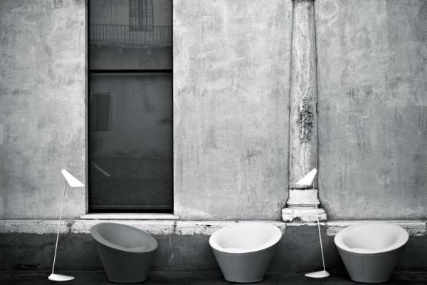 GirolaA swivel armchair which enfolds the body and rotates fully on its own axis thanks to a ball mechanism in the base. An original and comfortable item of furniture, suitable for placing in the centre of any space. The frame is in beech plywood, upholstered in differentiated-density polyurethane foam.