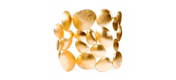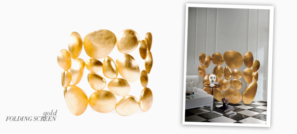 GoldInnovative yet sublime this piece of art was designed in true BL style. Reminiscent of a group of pebbles forming a sculptural like composition at the bottom of a river, this ultra lux screen is fashioned from nineteen pieces of fiberglass filled with expandable polyurethane and finished in gold leaf with a high gloss varnish. Dimensions : WIDTH 2010 x DEPTH 140 x HEIGHT 1450mm |