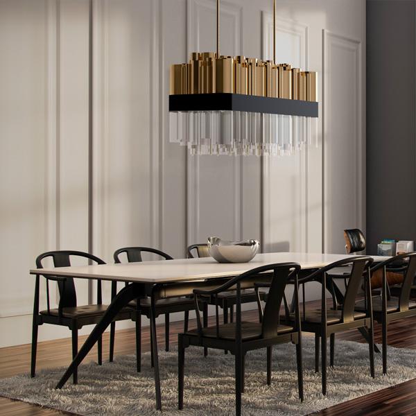 Granville Suspension LampThe District of Granville Island has seen the transformation of its old industrial area into a rich shopping and cultural zone. Found right in the heart of Vancouver, the calm, creative island is an escape from the bustling city that surrounds it. Granville suspension lamp borrows the dramatic spirit of the island and the skyline of Vancouver to create a grandiose light fixture, perfect for expansive spaces. The lamp features a diversity of tubes, in gold plated brass and glass, brought together by a black lacquered brass ribbon. |