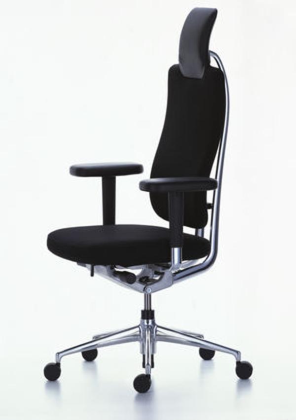In an upright sitting position, the head is naturally balanced on the spinal column. However, when the sitter alters this position—thereby changing the parameters of a chair's supportive functions—the inevitable result is muscle strain in the neck and shoulders. A conventional office chair has a contoured backrest with a curve in the lumbar zone to support the sitter's torso. In the reclined position, however, the head is no longer aligned with the spine, forcing the shoulder and neck muscles to bear its weight. This results in strain and tension.